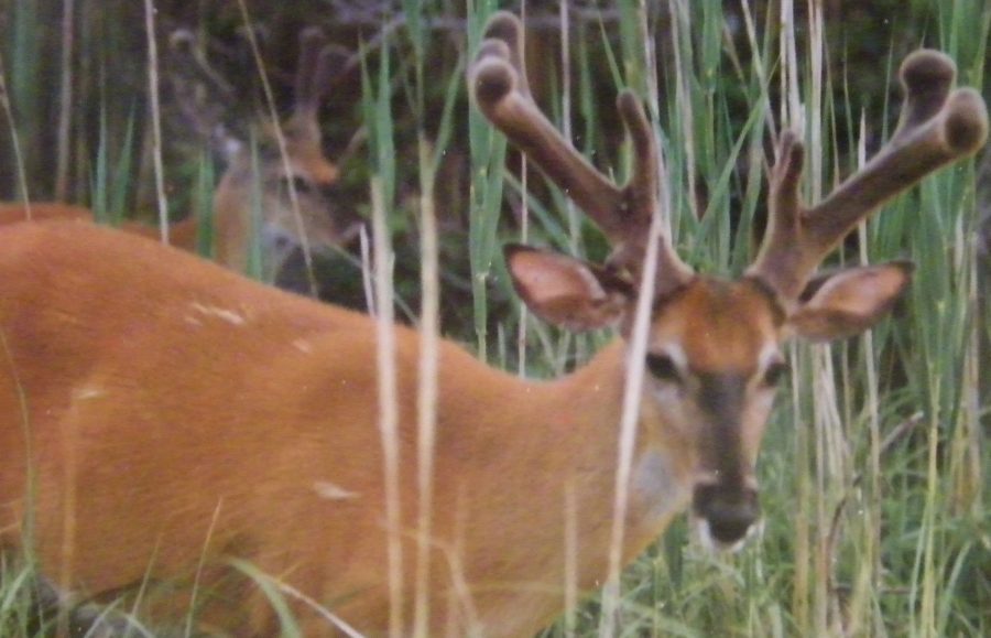 I came across an albino deer running from a kettle hole on the grounds of Our Lady of the Island in Manorville.