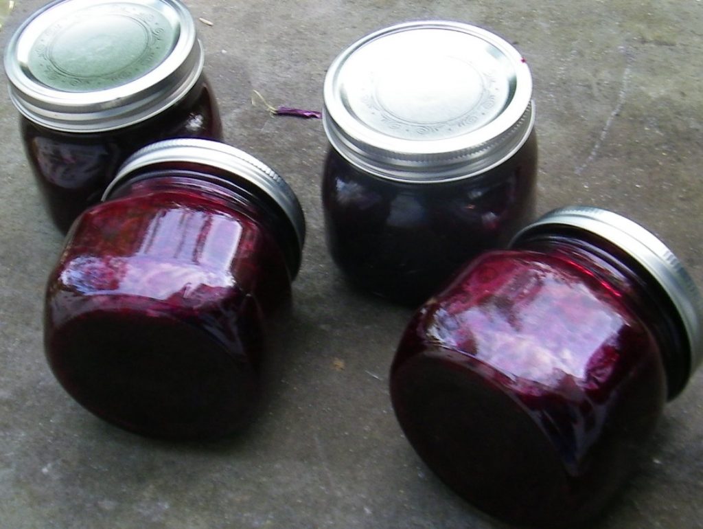 We ended our harvest with a bucket and a half of currant fruit and said our goodby to Don. Back home, we removed stalks, leaves, and some of the unripe fruit. Nancy took over in the kitchen and we ended up with nine 16-ounce jars. She used a recipe that required no pectin, a recipe called Bar le Duc Currant Jam. I made pancakes the day after…no maple syrup required. We had our fill of antioxidants.